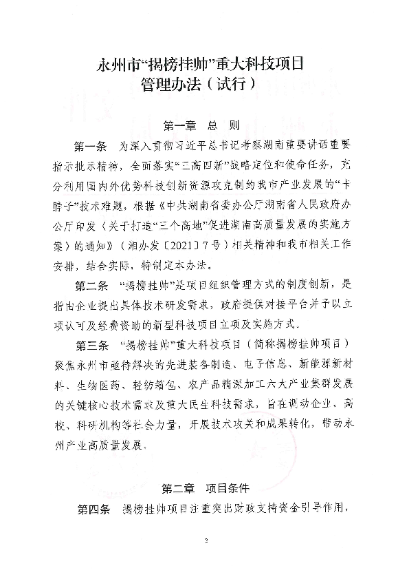 永州市科学技术局解读《永州市“揭榜挂帅”重大科技项目管理办法(试行)》