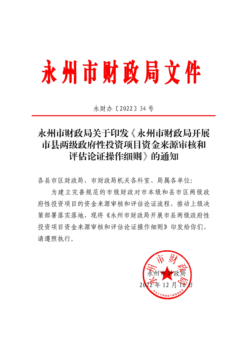 永州市财政局开展市县两级政府性投资项目资金来源审核和评估论证操作细则