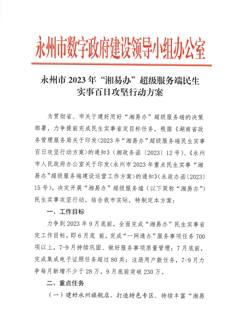 永州市2023年“湘易办”超级服务端民生实事百日攻坚行动方案