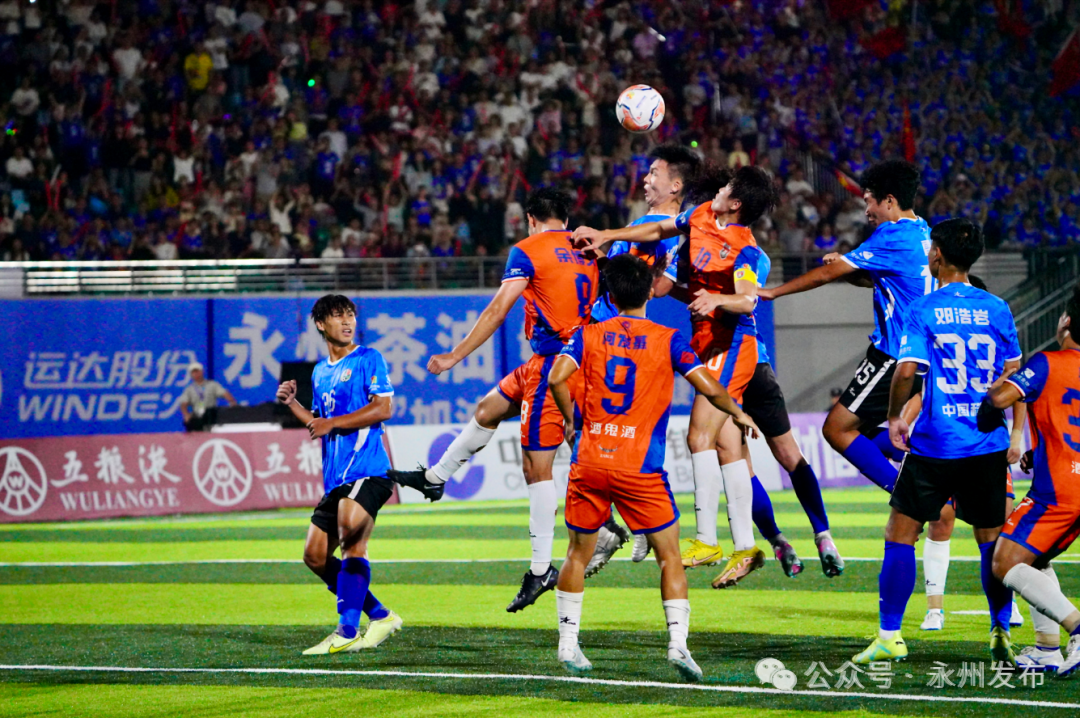 19时28分,开赛环节庄重进行,赛事旗、裁判员与运动员依次入场,全场齐唱国歌,体育精神与家国情怀在这一刻交融。19时38分,上半场比赛正式打响,永州队与湘西队在绿茵场上展开激烈角逐。球员们挥洒汗水,攻防转换间尽显足球竞技的魅力,现场观众的呐喊助威声此起彼伏。下半场,永州队发起猛烈进攻,湘西队则展现出顽强的防守,双方队员延续上半场的拼搏劲头,为了胜利全力冲刺,每一次传球、射门都牵动着现场所有人的目光。虽然最终双方比分0:0,但两队球员在场上每球必争的拼搏精神,已然赢得现场观众的阵阵掌声。这场融合了体育竞技与文化展演的盛会,不仅让球迷享受到了精彩的足球比赛,更让所有观众领略了永州独特的文化魅力。今夜,足球与艺术在永州这片热土上完美融合,书写了一段难忘的秋夜记忆。