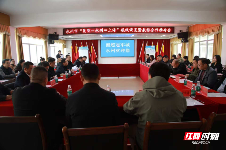 红网时刻新闻1月15日讯(通讯员 蒋超 周玉和)1月15日上午,永州市“昆明-永州-上海”航线恢复暨航旅合作推介会在永州零陵机场召开。市交通运输局、市文旅广体局、永州机场、各县区文旅主管单位以及30余家文旅、酒店单位有关负责人等多方代表齐聚一堂,共话航线发展与航旅合作新机遇。