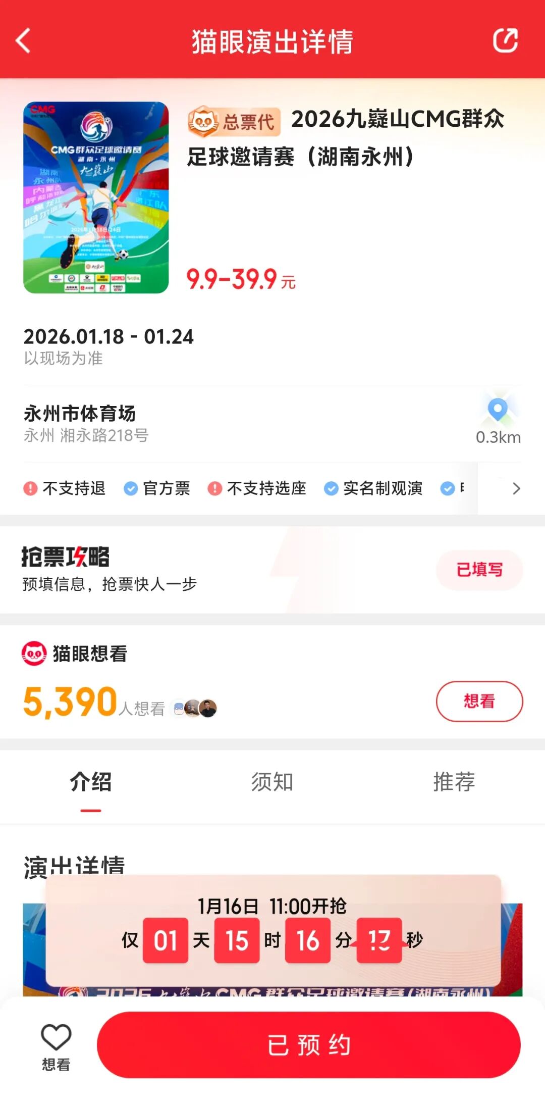 1.18/19场次1月16日11:00开票