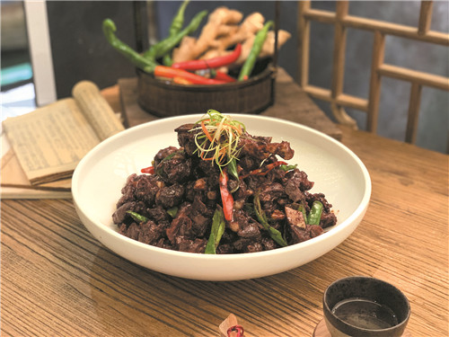 采用永州本地麻鸭经干炒、酒爆、香煸、闷烧、血炒等工序制作而成,质地嫩脆,鸭血香滑,香浓味厚,是永州最为盛行的舌尖风味。