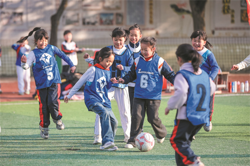 1月7日,蓝山县第一完全小学的校园里,一场精彩的足球赛正在激烈进行。随着“湘超”联赛的热度持续攀升,该县各中小学校纷纷开展形式多样的足球活动,不仅营造了浓厚的校园足球文化氛围,更有效激发了青少年对足球运动的热爱。 彭华 邝小兰 摄
