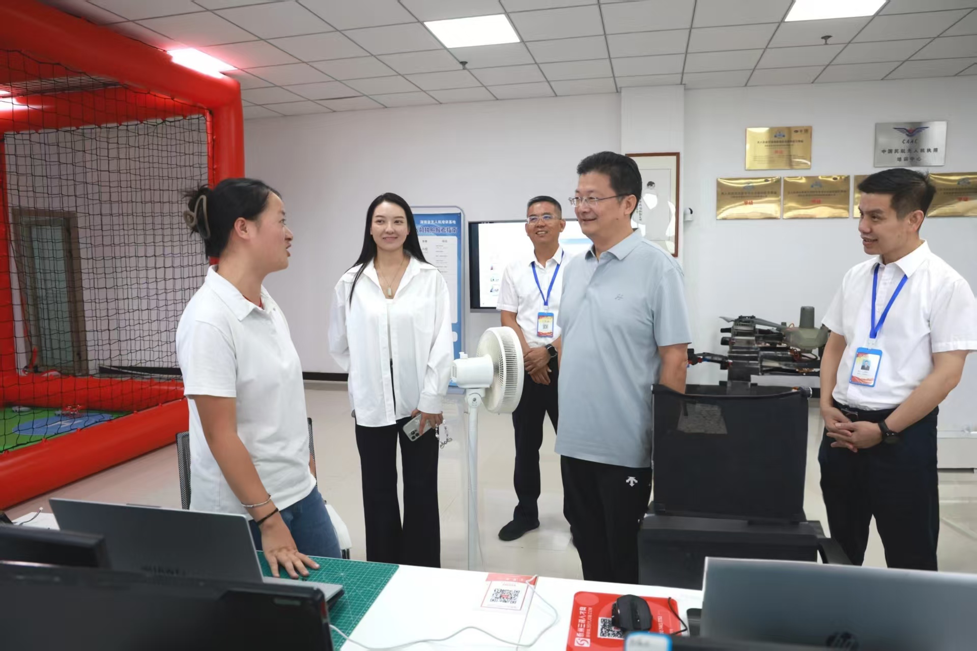 陈爱林到湖南省元翼智飞通用航空科技有限公司,实地了解企业发展、无人机技术服务和场景运营等情况,并对公司在“湘超”永州主场赛事上精彩绝伦的无人机表演表示充分肯定,勉励公司强化科技创新,在农业植保、森林防灭火、研学等方面拓展应用场景,提高市场竞争力和影响力。永州将统筹空间布局,整合科创资源,强化要素保障,助力企业发展壮大。