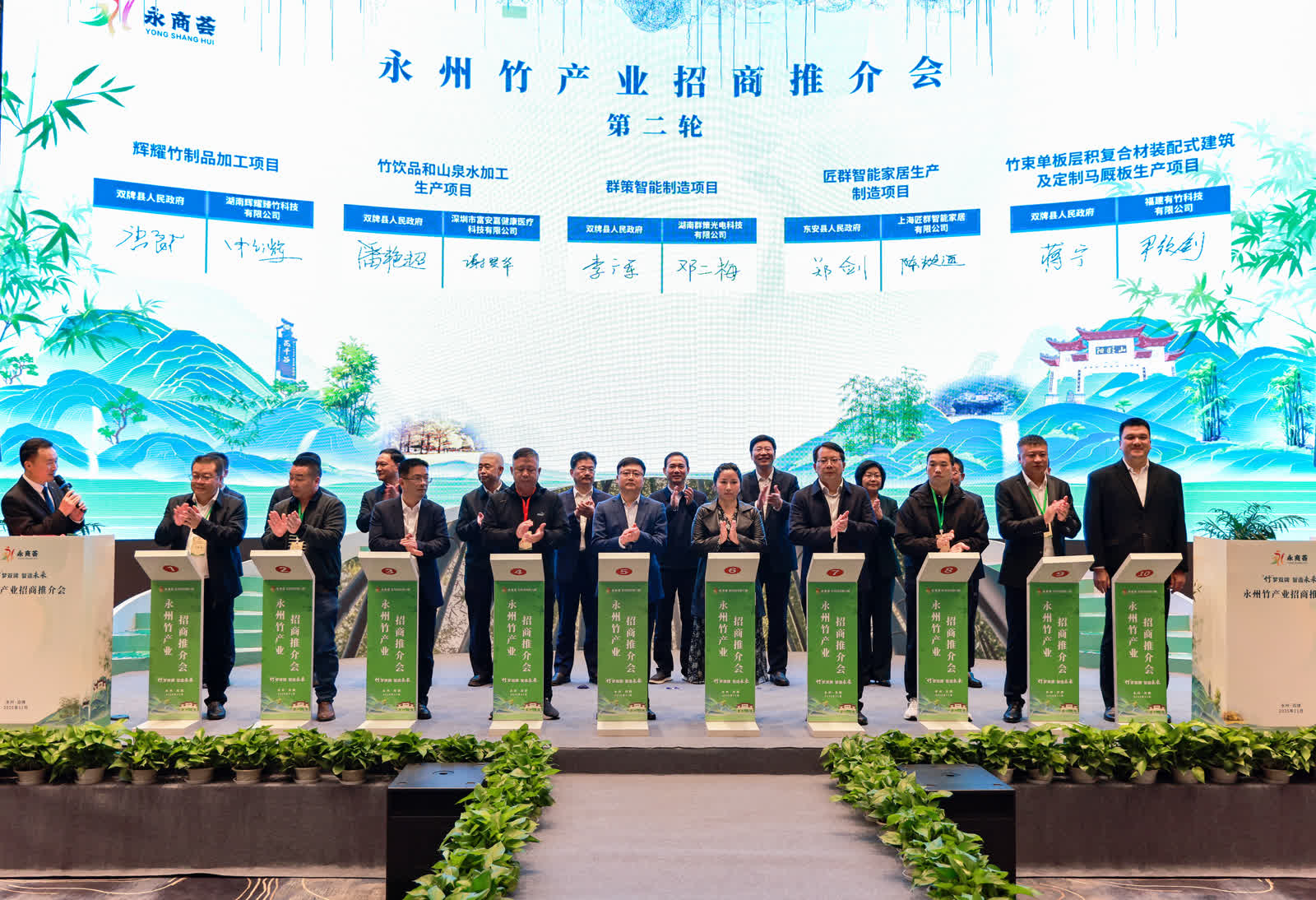 李志勇说,近年来,全省上下锚定“千亿产业”目标,走出了一条集群突破、动能强劲、特色鲜明的竹产业发展路径。永州作为我省重要的竹产区,生态优势明显,产业基础扎实,发展潜力巨大。期待通过“永商荟”的平台,汇聚各方智慧与力量,吸引更多有识之士、有为之企,将目光投向湖南这片充满希望的“绿海”,将资金、技术、管理、品牌等优势资源,投到永州、落到双牌这片热土。