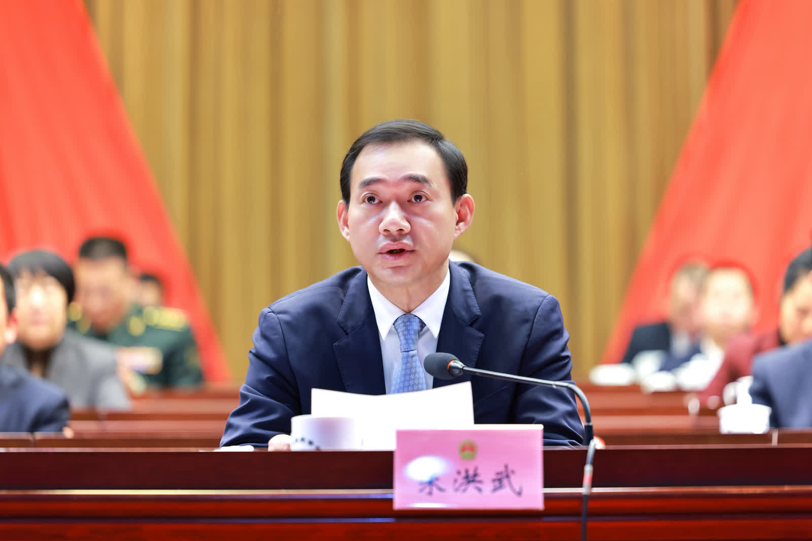 在热烈的掌声中,市委书记朱洪武发表讲话。