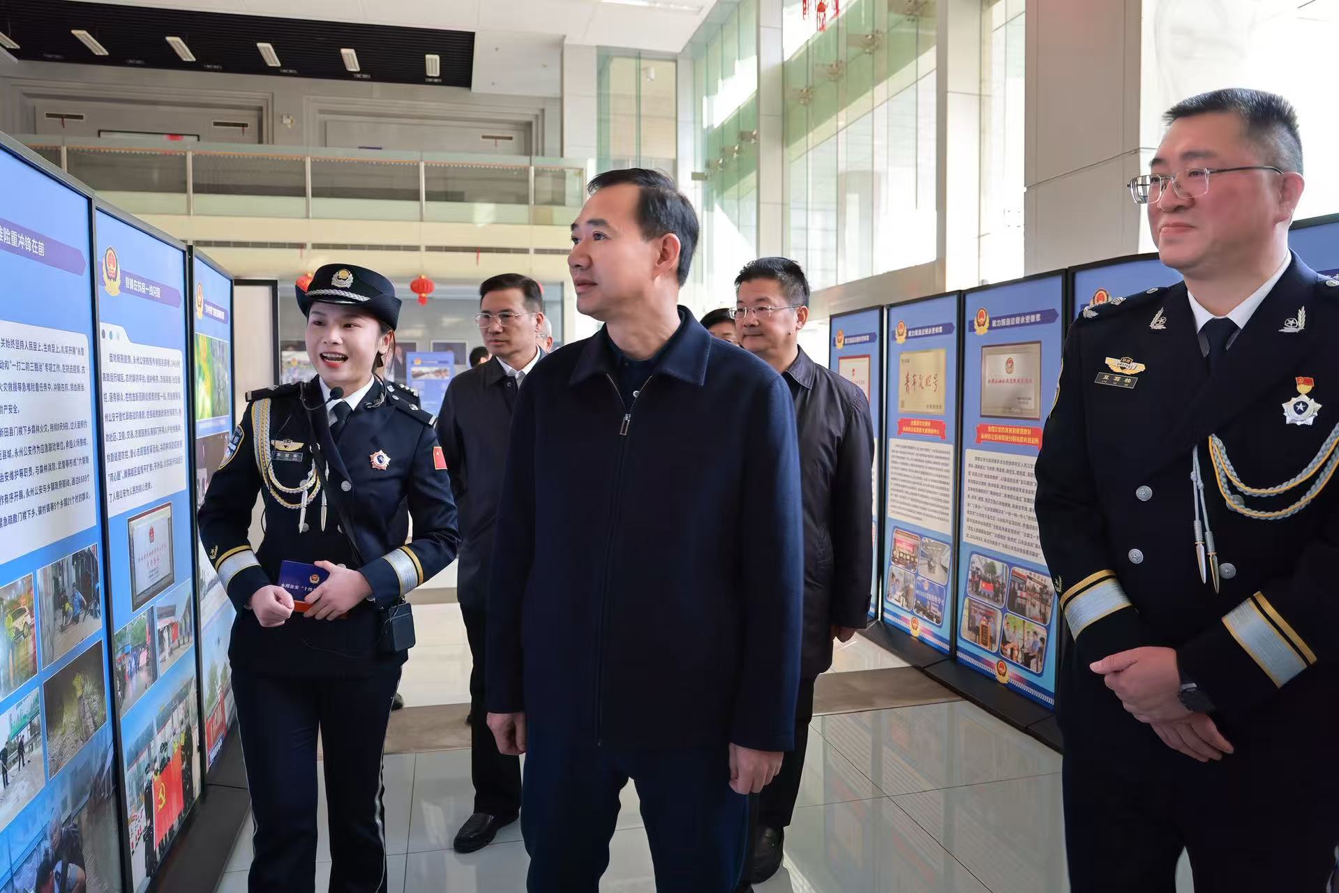 今日永州讯(全媒体记者 陈小波 袁志圣 通讯员 李明宇)1月9日下午,永州市公安机关庆祝第六个中国人民警察节主题活动在永州市融媒体中心举行。市委书记朱洪武,市委副书记、市长陈爱林慰问了部分民警并参观"十四五"永州公安成果展。市领导张建坤、刘玲军、吴剑林、夏葛桉出席。