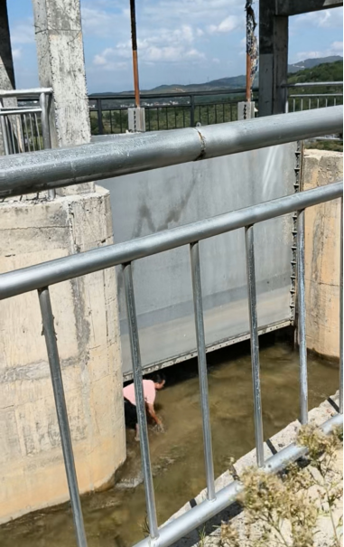 道县四马桥管理所巡渠员刘华清理闸门烂渣