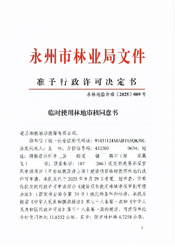 永林地临许准〔2025〕009号(道县乐福堂风电场)