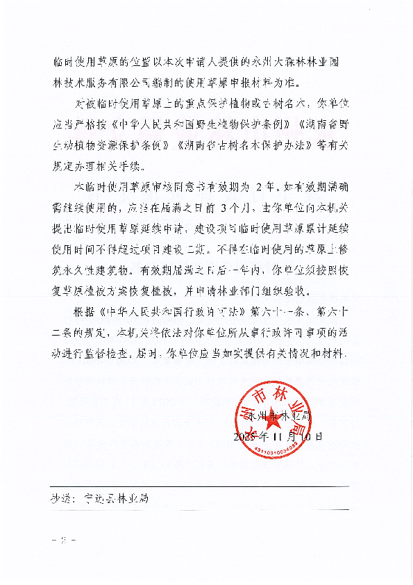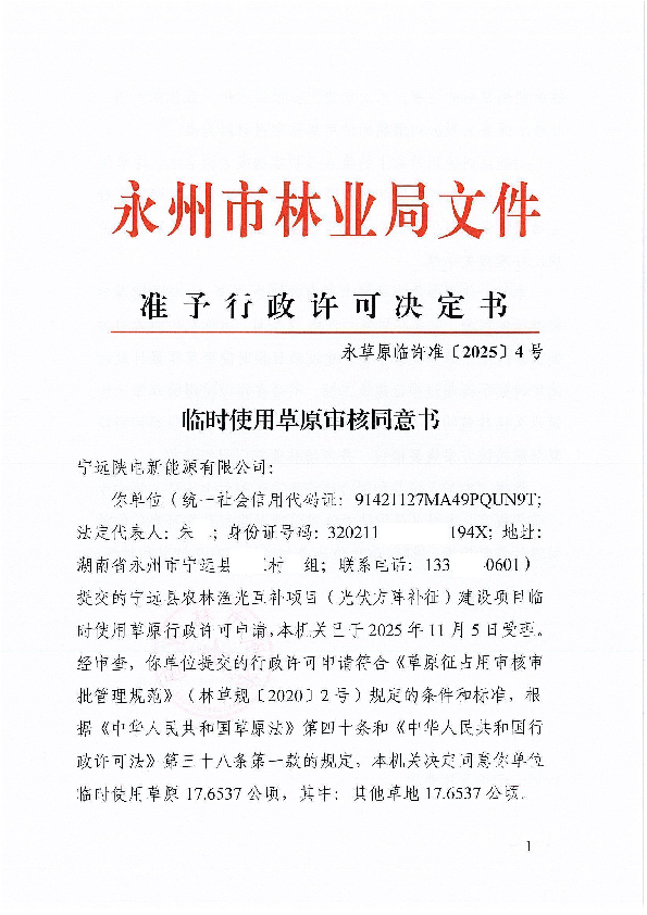 永草原临许准〔2025〕4号临时使用草原审核同意书