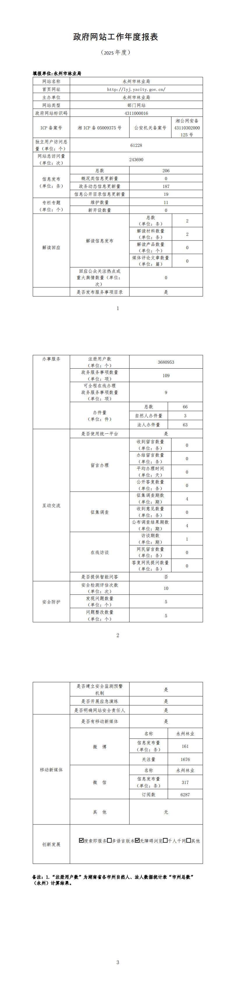 永州市林业局2025年政府网站工作年度报表