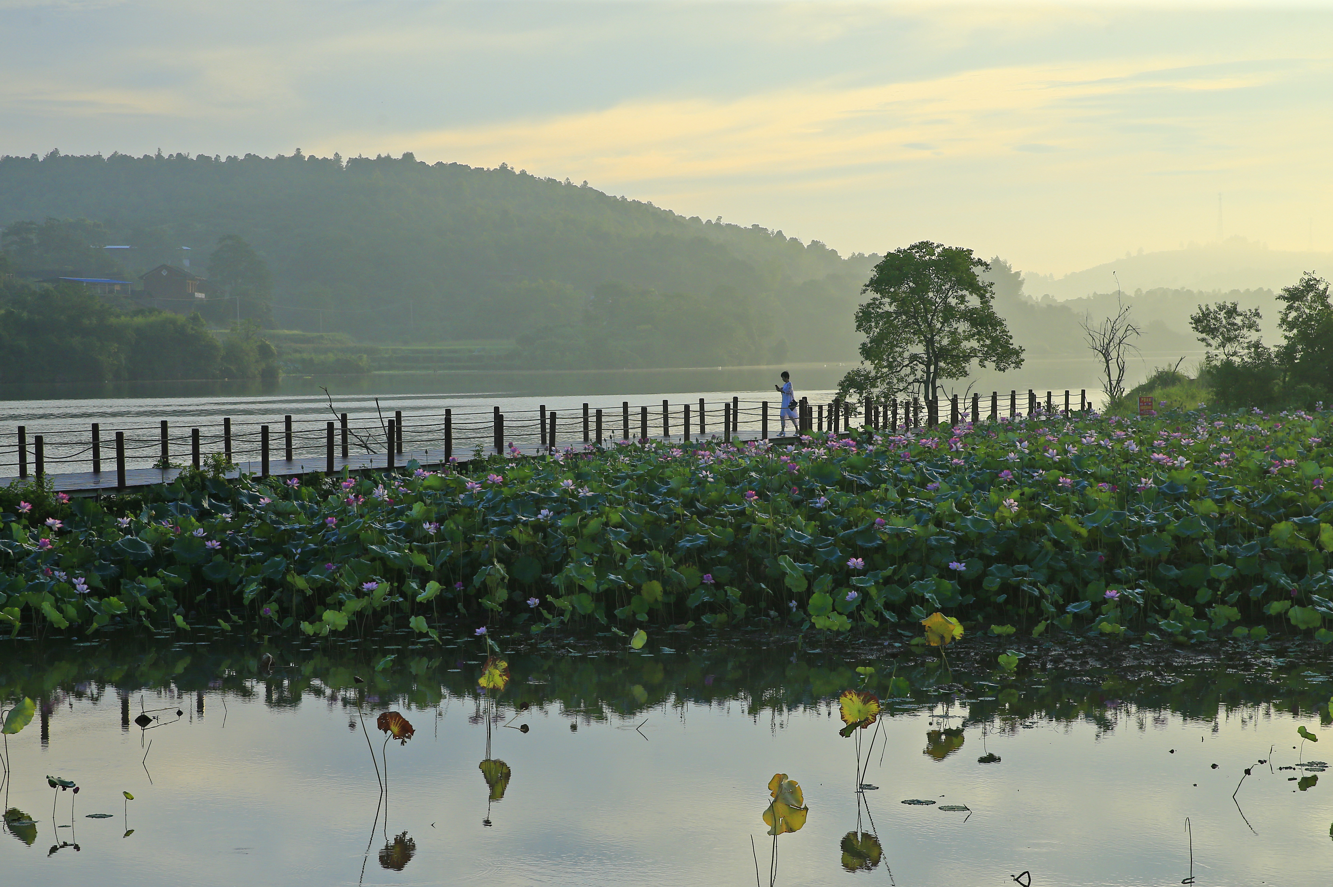 花千谷·月湖景区位于双牌县泷泊镇霞灯村,距县城3公里,西连潇水,东挽都庞岭余脉,与日月湖国家湿地公园融为一体,2019年创建为国家AAA级旅游景区,是2021年湖南省春季乡村旅游节举办地。花千谷内山谷连环,百花繁茂,月湖漫江碧透,山环水抱。来这里,您可以站立在“泰和亭”看山流水峙、月影孤帆,可以行走于“花径小蹊”观蜂飞蝶舞、花开花落,可以闲坐在“慢时空”听《渔舟唱晚》、品古树茗香,可以宿居在“羡渔部落”沐凉风习习、数星河浩瀚,也可以乘排筏画舫荡舟月湖、沉醉于碧水青山,还可以到“猪栏咖啡”品苦甜参半的现磨咖啡,尝酸辣鲜美的“双牌味道”。