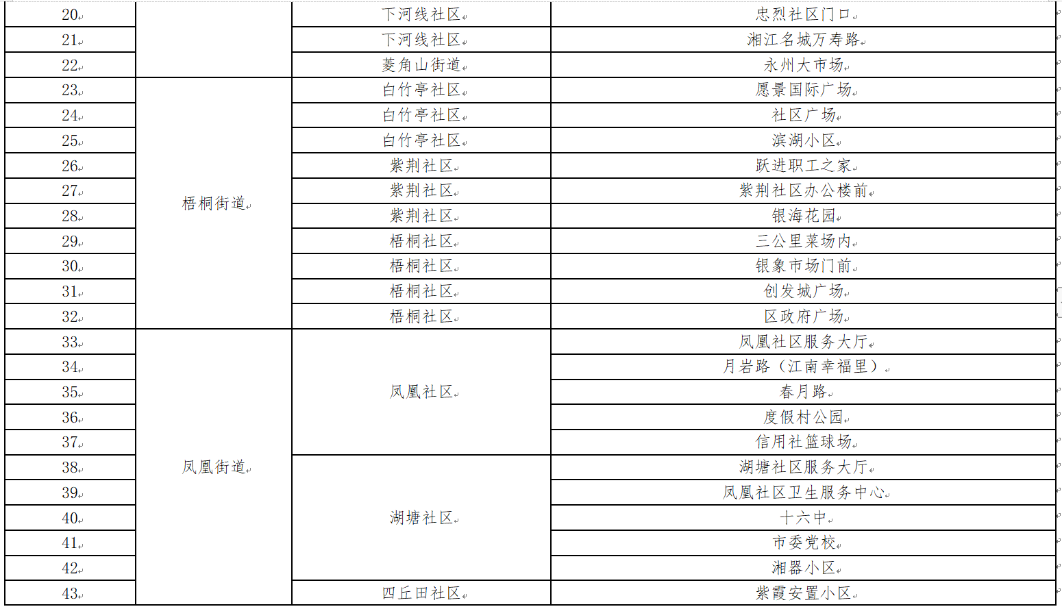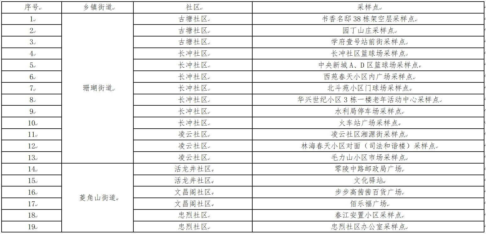 凤凰街道、梧桐街道、珊瑚街道(城区)、杨家桥街道、菱角山街道、肖家园街道、永州市经开区仁湾街道(采样点详见附表1)。