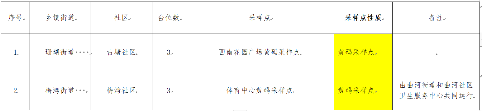 2、黄码人员请到指定的黄码检测点进行核酸检测(详见附表2)。