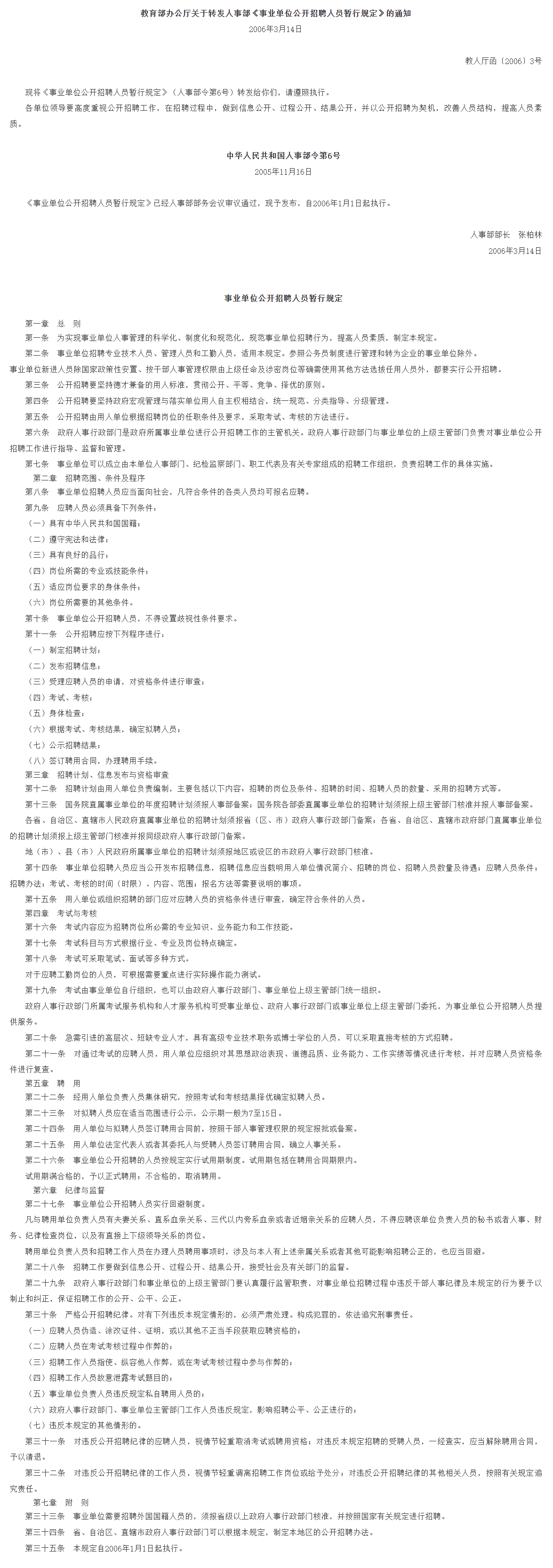 教育部办公厅关于转发人事部《事业单位公开招聘人员暂行规定》的通知