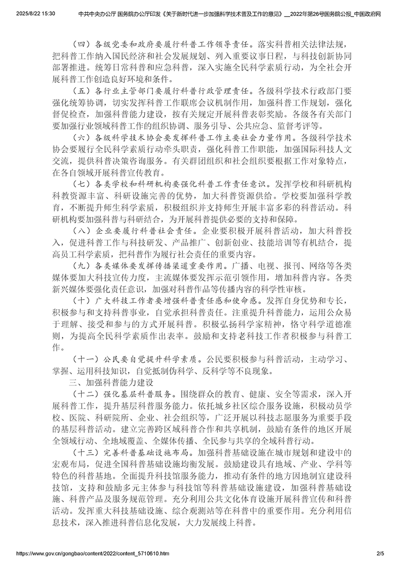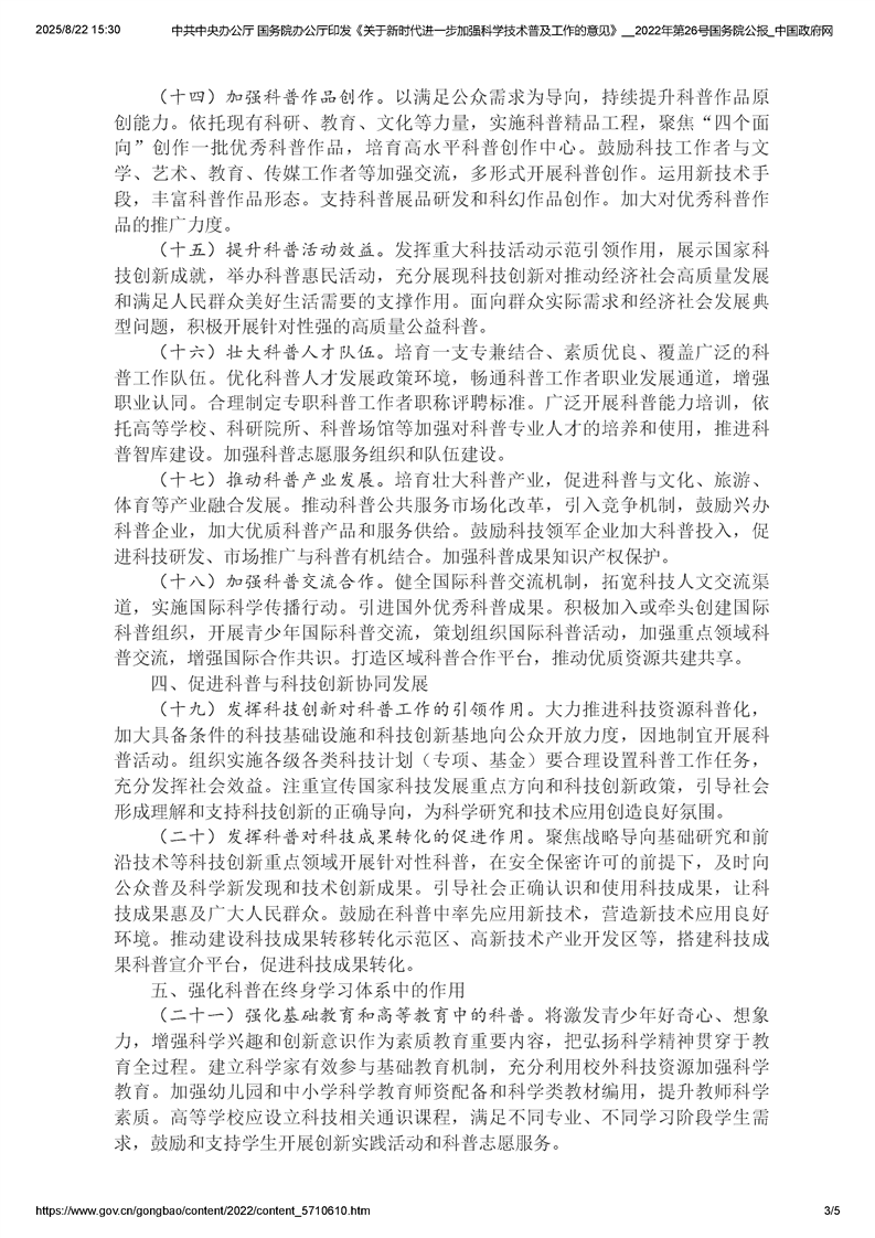 中共中央办公厅 国务院办公厅印发《关于新时代进一步加强科学技术普及工作的意见》