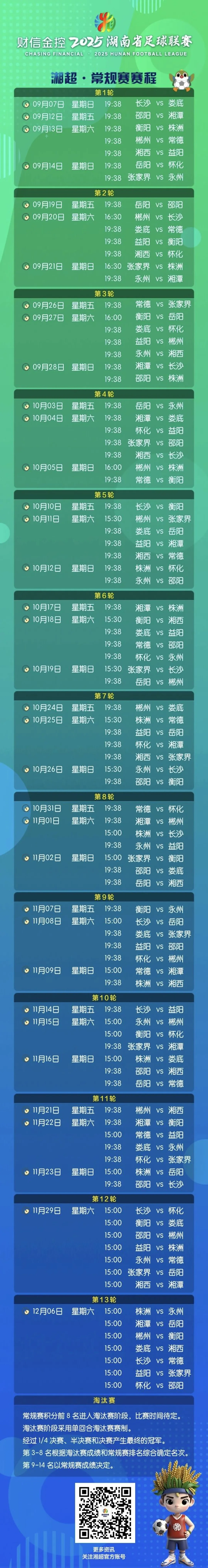 财信金控2025湖南省足球联赛(湘超)常规赛完整赛程出炉!