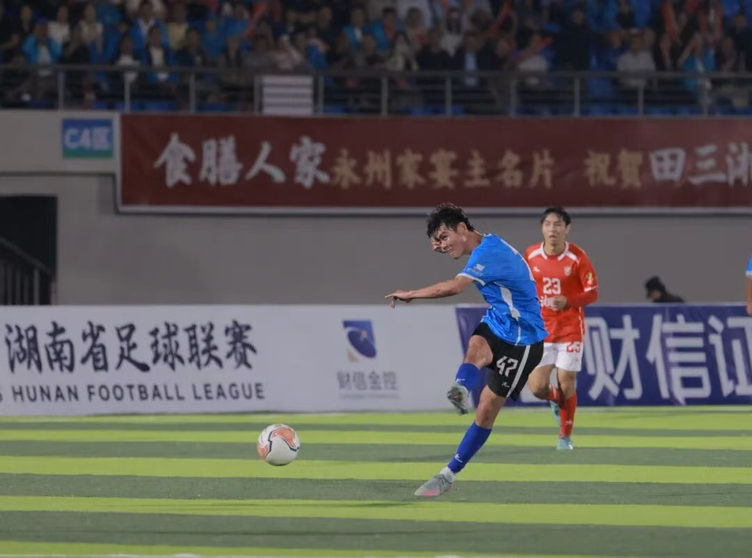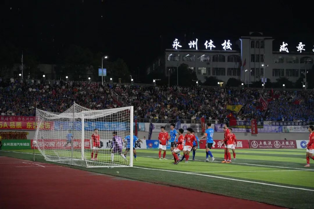 10月3日晚2025年湖南省足球联赛(“湘超”)第四轮永州队客场挑战岳阳队在岳阳...