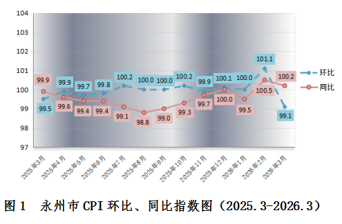 2026年3月份,食品供应总体充足,永州居民消费价格(CPI)同比价格上涨0.2%,环比价格下跌0.9%。