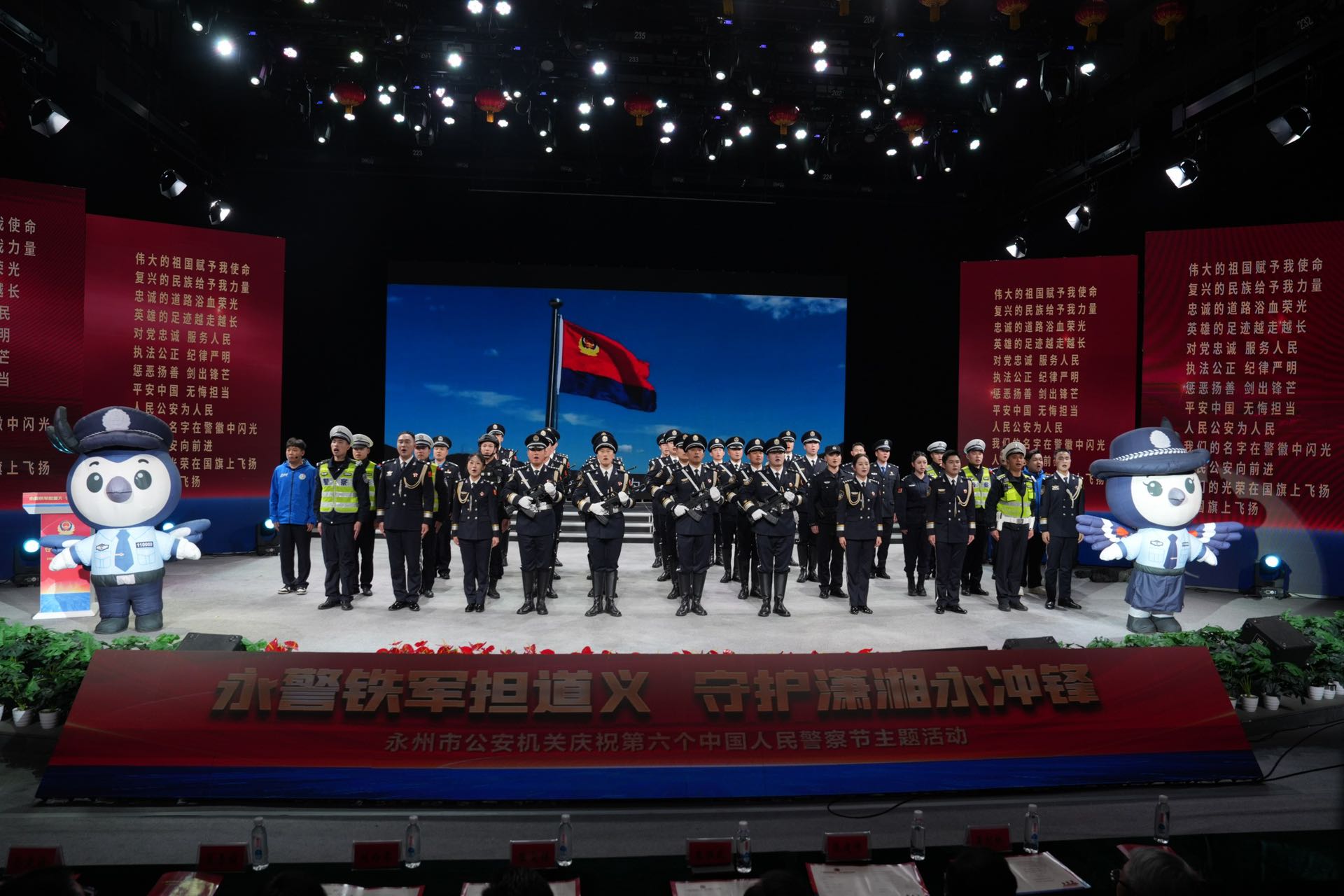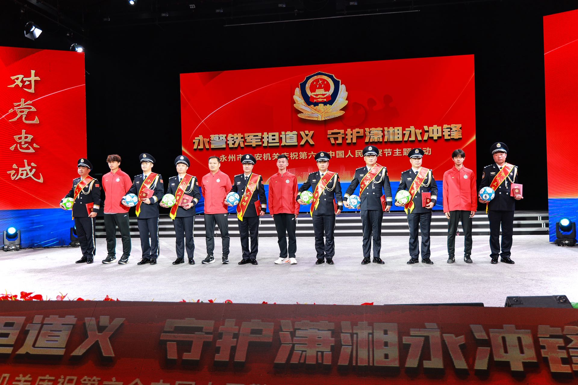 此次活动以"永警铁军担道义 ,守护潇湘永冲锋"为主题,举行了"湖南公安荣誉章"颁授、2025年度青年微党课竞赛颁奖、"湘超"安保集中授奖仪式和节目表演,发布了永州公安动漫IP形象和文创产品。
