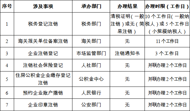 *税务登记注销和海关报关单位备案注销,在企业注销公示期内同步办理。
