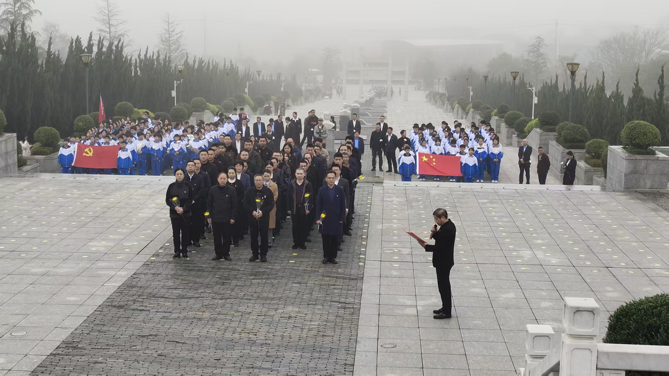 上午8时许,烈士纪念园内松柏凝翠、庄严肃穆。巍然矗立的烈士纪念碑上,“人民英雄永垂不朽”八个鎏金大字在晨光中熠熠生辉,彰显着英烈们不朽的功勋与崇高的气节。全体人员手持鲜花,在纪念碑前整齐列队、神情肃穆,以最庄重的姿态,向长眠于此的革命先烈致以最崇高的敬意。