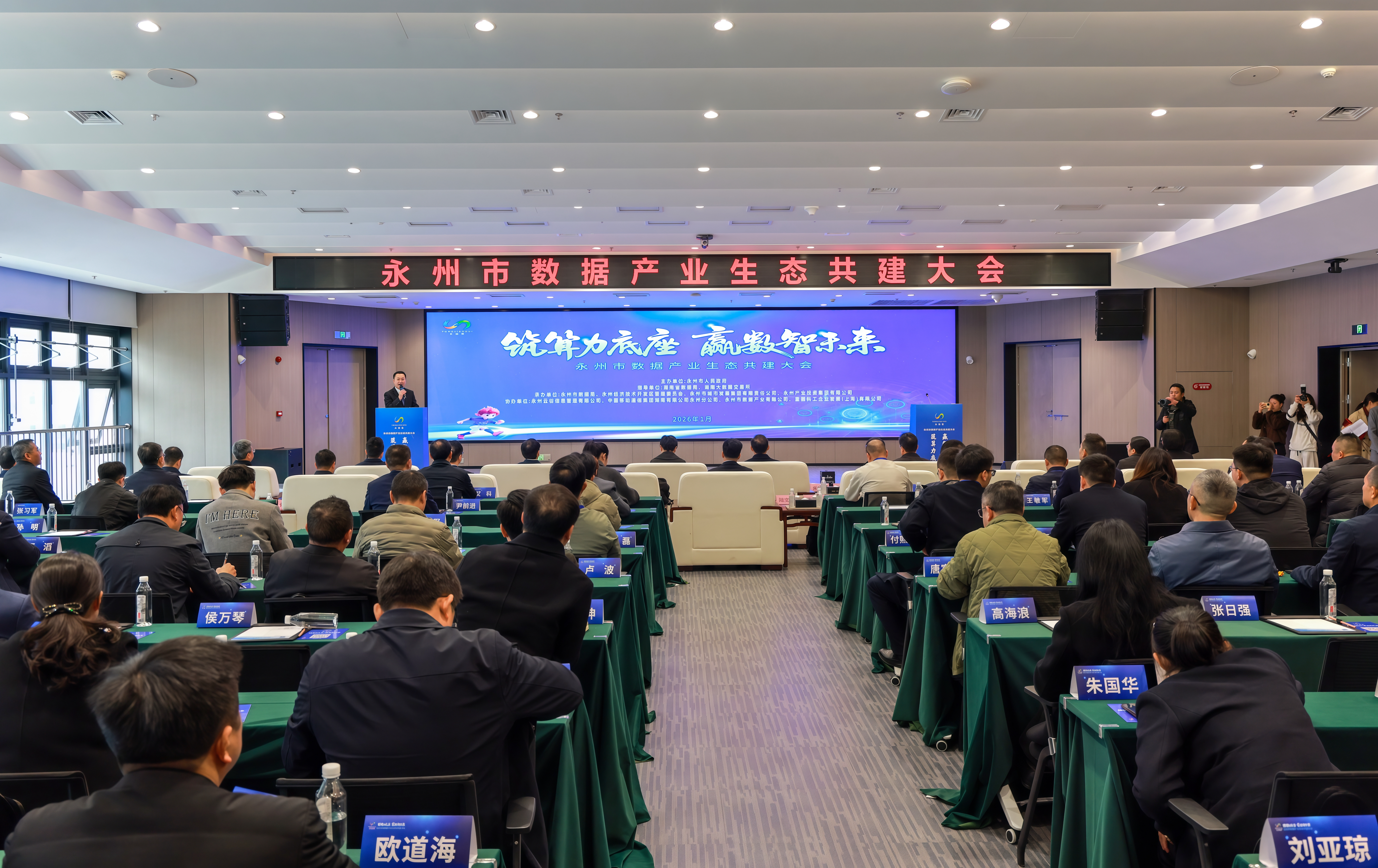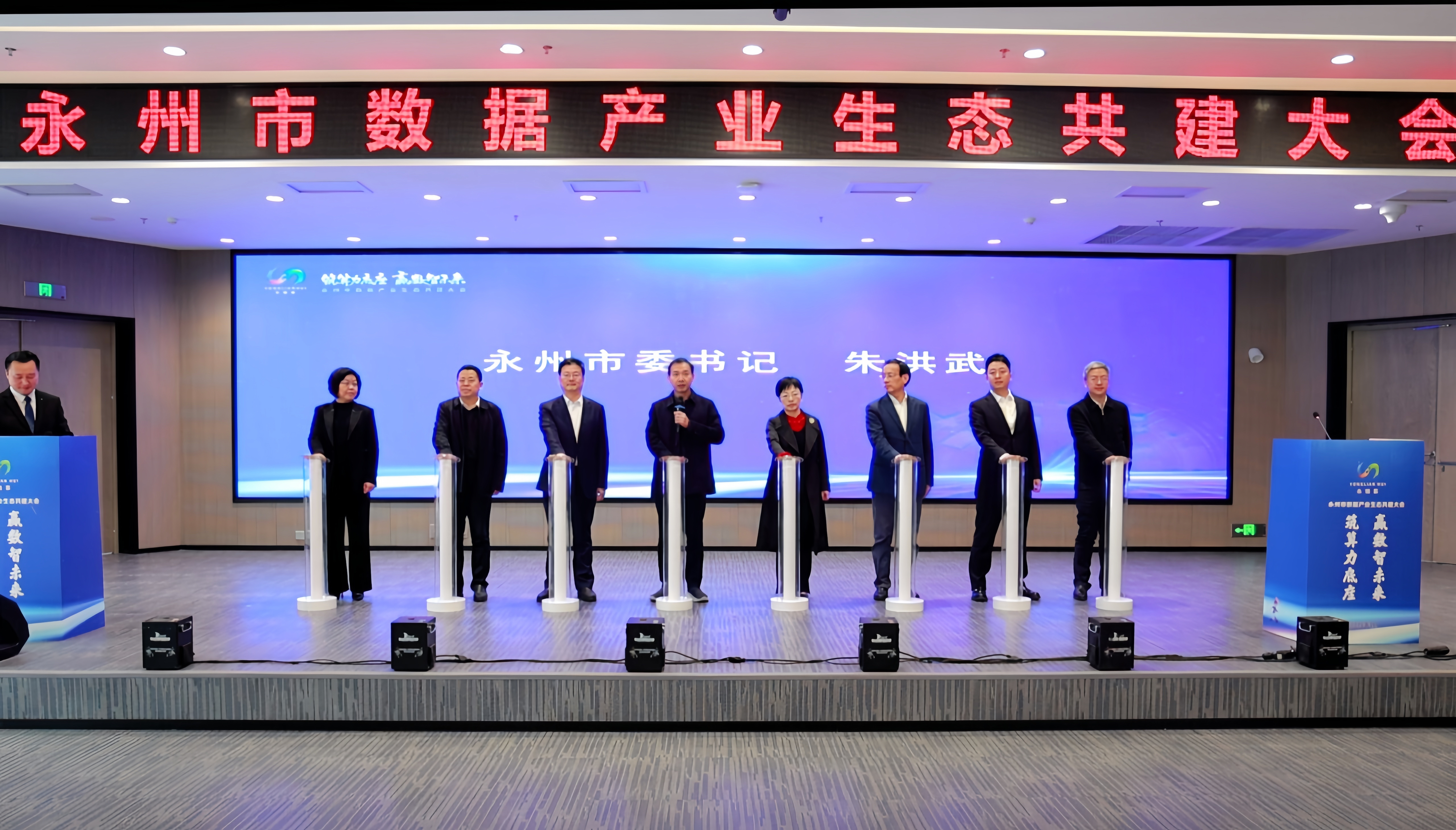 今日永州讯(记者 成丹丹 袁志圣 雷靖)1月15日上午,永州市数据产业生态共建大会在永州工业馆举行。市委书记朱洪武出席并宣布永州潇湘智算集群、永州数据要素服务中心启动。湖南省数据局党组书记、局长彭涛讲话,市委副书记、市长陈爱林致辞。中国移动通信集团湖南有限公司副总经理张坤,湖南大数据交易所董事长曹出,湖南大数据交易所总经理方建忠,市领导刘厚、刘玲军、陈卓懿、方智毅出席。