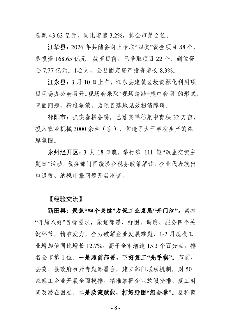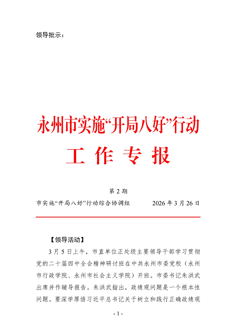 永州市实施“开局八好”工作专报(第2期)