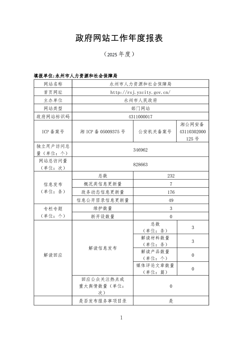 永州市人力资源和社会保障局2025年度政府网站工作年度报表