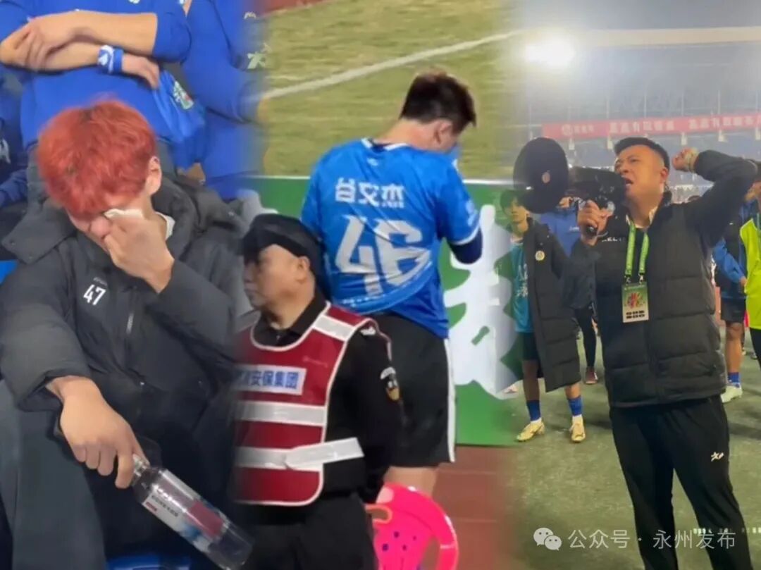 当终场哨声响起,娄底市体育中心的记分牌定格在0:1。看台上,永州队球员林昊站在球迷中间,双眼通红。作为球队主力之一,他因累计黄牌无法上场,却在90分钟里用尽全力为场上的队友呐喊。当结局定格,这个从不服输的少年,终于忍不住掩面而泣。