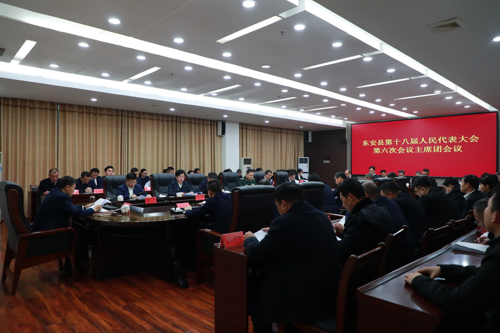 今日永州讯(通讯员 唐诗琴)1月29日下午,东安县第十八届人民代表大会第六次会议主席团召开第三次会议。东安县委书记唐何,县委副书记、县长蒋华,县委副书记、统战部部长李月红,县人大常委会主任张波,县政协主席李劲涛等大会主席团成员参加会议。
