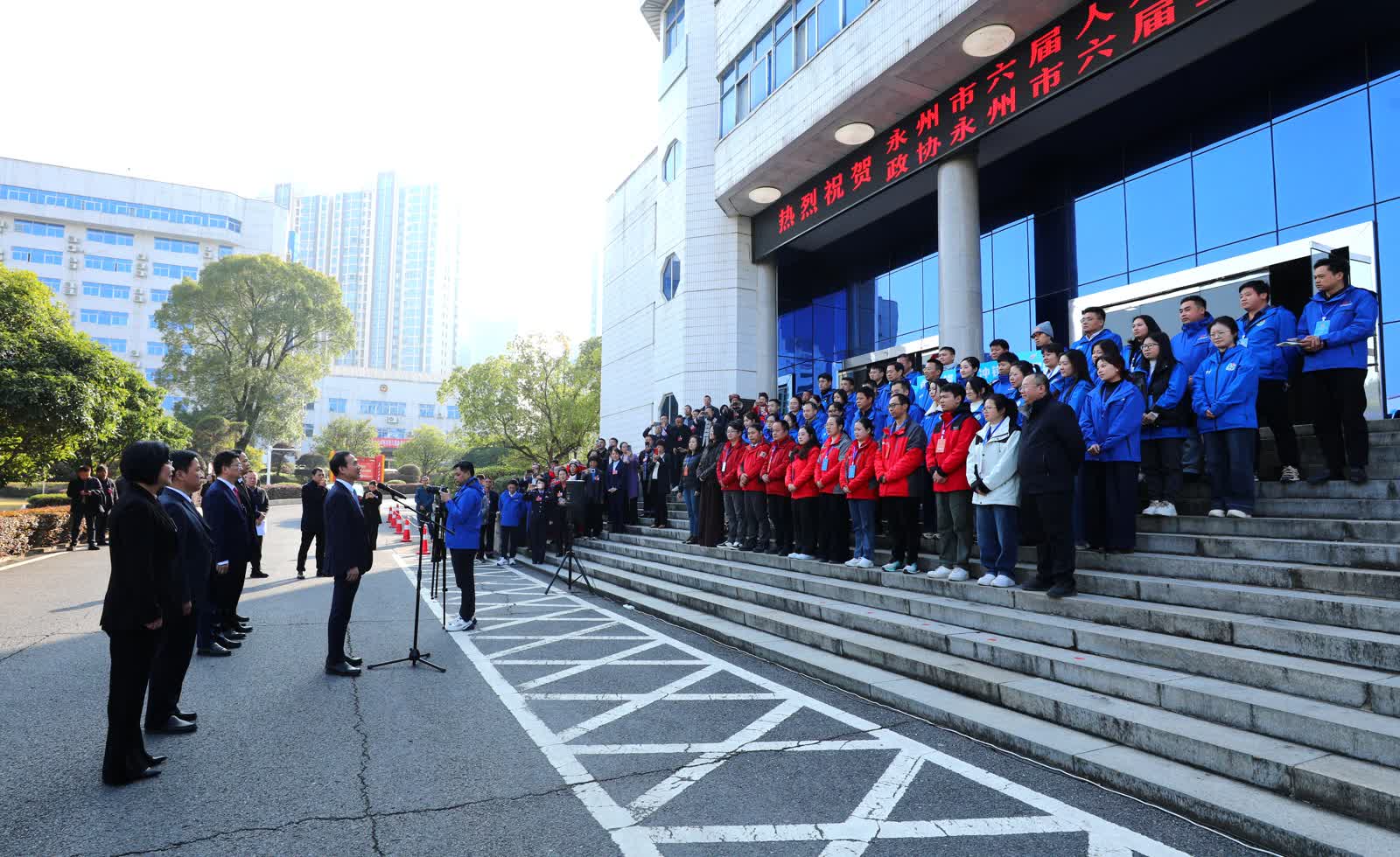 今日永州讯(全媒体记者 陈小波 袁志圣)12月26日下午,市委书记朱洪武,市委副书记、市长陈爱林在永州会堂看望慰问参与市两会报道的新闻工作者。市领导蒋强先、谢景林、刘玲军、吴恢才一同看望。