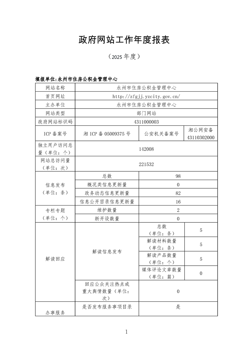永州市住房公积金管理中心2025年政府网站工作年度报表