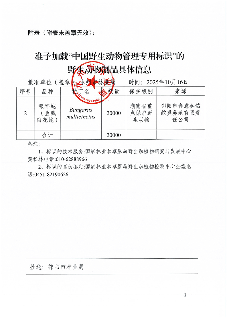永林护许【2015】18号关于准予永州市众信中药饮片有限公司利用药用蛇类产品的行政许可决定书